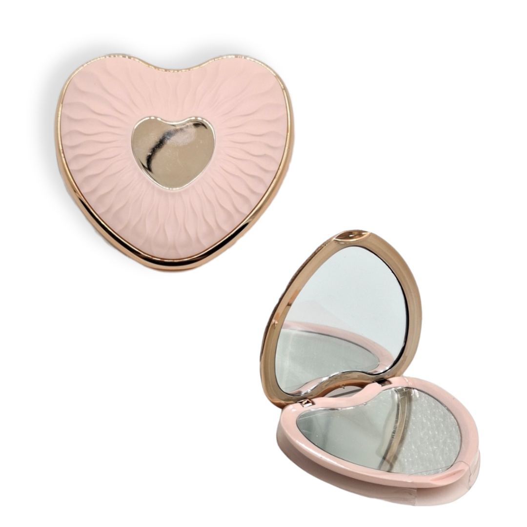 Este espejo compacto es perfecto para tu cosmetiquera, combinando funcionalidad y estilo. Con diseños en forma de corazón y circular, es tanto hermoso como práctico para retoques rápidos. ¡Un toque de elegancia y dulzura en tu rutina de belleza